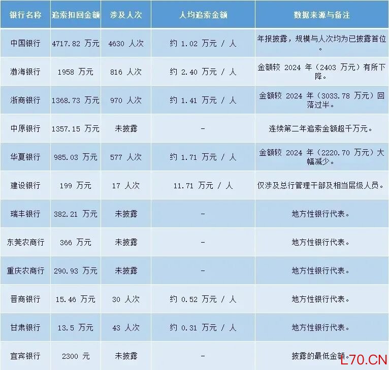 值得一提的是,在已披露的上市银行中,中行连续三年共追回金额超1.02亿,涉及超9100人次,是所有银行中最多的。可见中行下手够狠,即便对多年前犯的错误被查到,也要吐回相应绩效工资,当然这也可以说是中行办事比较负责。