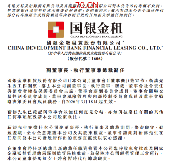 国银金租:靳涛因工作调整辞任副董事长、执行董事、总裁
