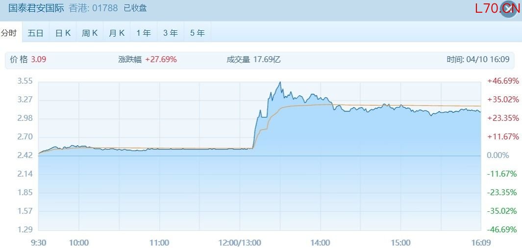 今日除了国泰君安国际外,相关概念股午后短线集体走高。其中,狮腾控股、云锋金融涨超8%。